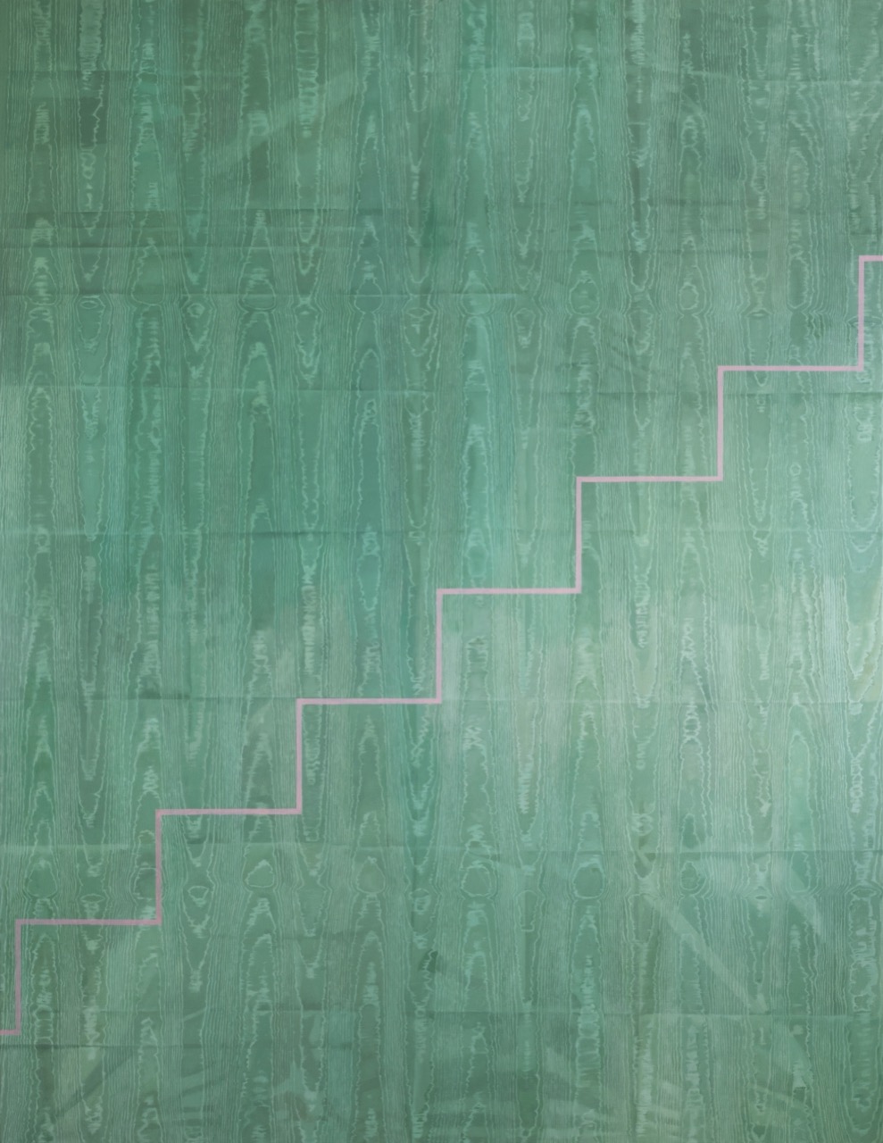 The title of the Family Walls series already hints at a connection between home and family—the works reflect the ambivalence inherent in this relationship. The painterly transfer of the wallpaper and fabric patterns that McCue used as templates for this series creates multi-layered surfaces in which personal memories overlap with the fleeting nature of memory itself. Irregularities, omissions, and blurring are not concealed—they are an integral part of the works.